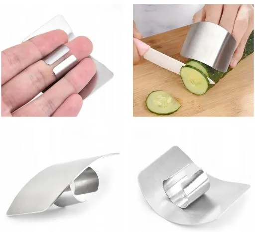 Ochraniacz na palce ma na celu zabezpieczyć palce podczas krojenia. Lekką stalową osłonkę należy nałożyć na palce i tą samą ręką przytrzymać produkt, następnie kroić wzdłuż krawędzi ochraniacza. Przyspiesza pracę i niweluje ryzyko skaleczenia. Osłonka jest lekka, poręczna i wytrzymała. Zapewnia komfort i pewność podczas krojenia. Wykonana ze stali szlachetnej. Można myć ją w zmywarce.